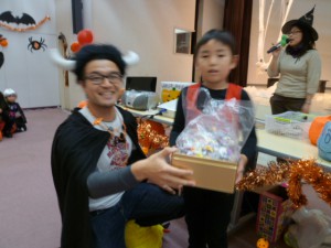 小さなお子さんは、言いづらかったけど頑張って「トリック・オア・トリート」と言ってお菓子をもらいました。