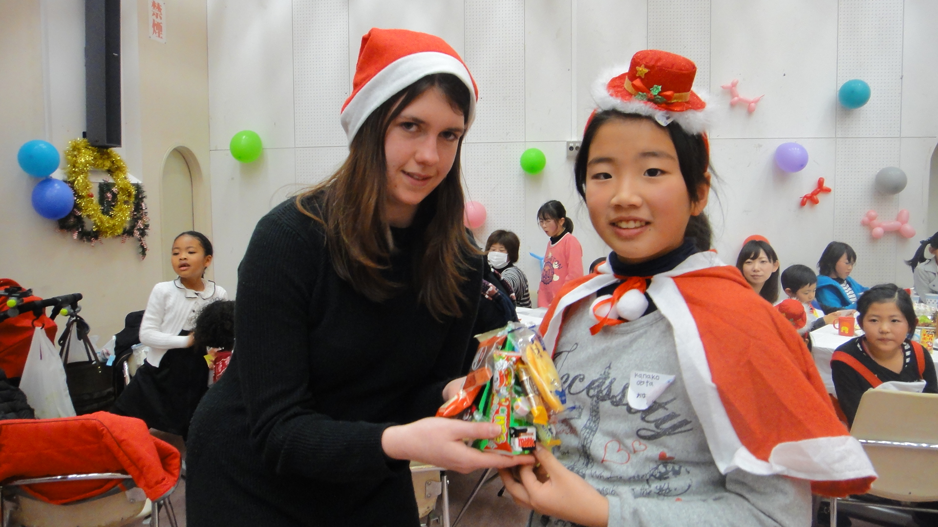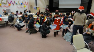 サンタクロースからプレゼントをもらいました。みんな恥ずかしそうにプレゼントを受け取りましたが、