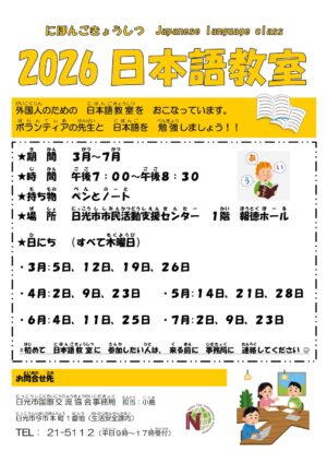 日光市国際交流協会(にっこうしこくさいこうりゅうきょうかい)には 日本語(にほんご)を勉強(べんきょう)する 教室(きょうしつ)が あります。